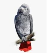 At first glance, the African grey is a medium-sized, dusty-looking gray bird, almost pigeon-like — but further investigation reveals a bright red tail, intelligent orange eyes, and a stunning scalloped pattern to its plumage.